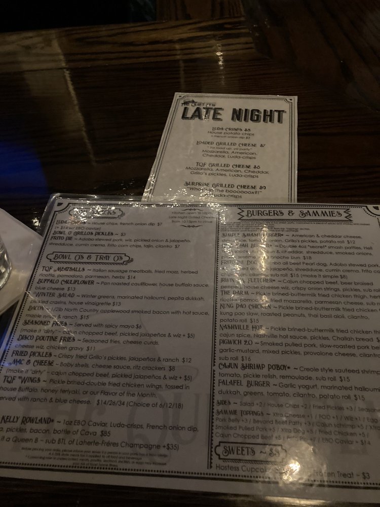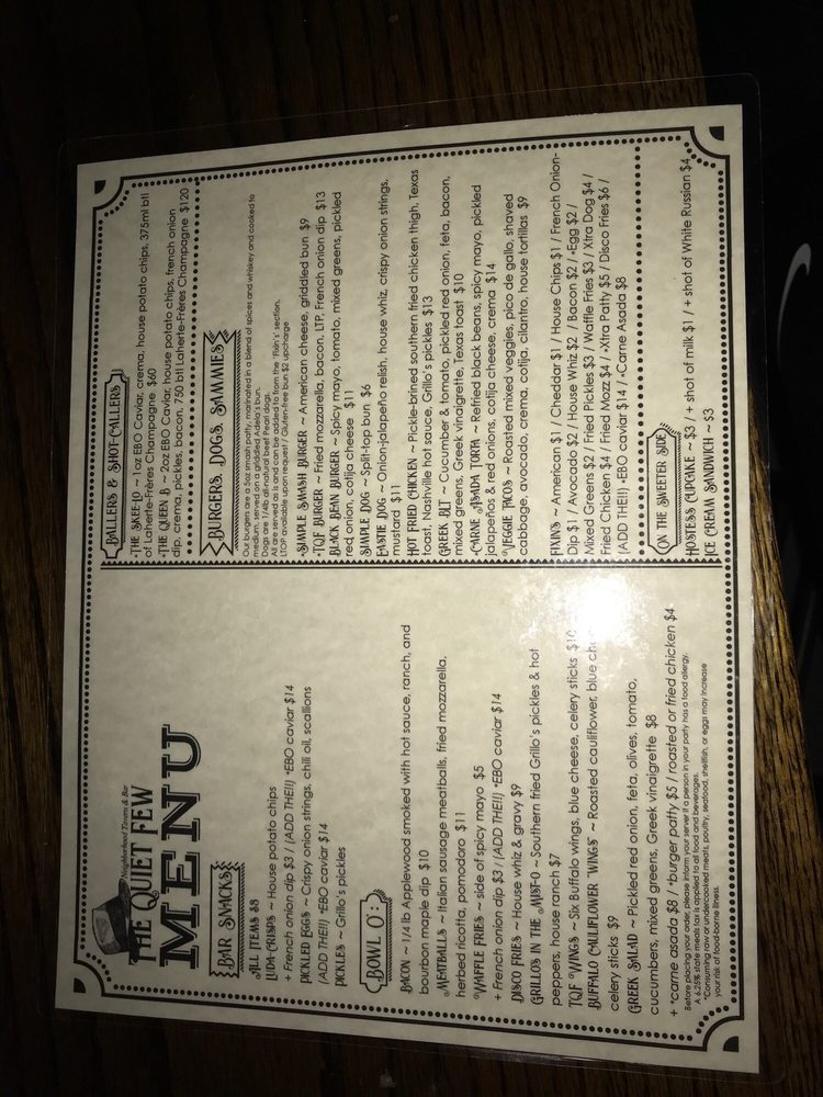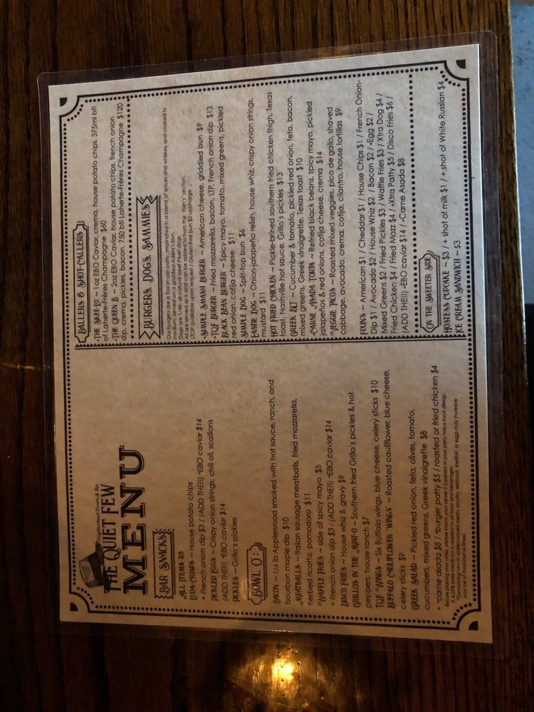 The Quiet Few is a standout cocktail bar and burger joint located in Boston, MA. With a diverse menu offering pescatarian and vegetarian options, it caters to a wide range of tastes. The establishment boasts a welcoming atmosphere, complete with outdoor seating, a pool table, and gender-neutral restrooms. Customers rave about the creative and delicious food options, such as the Smash burger and Hell Yeah burger, accompanied by waffle fries and a pitcher of Narragansett. The bar's signature pickle shot adds a unique twist to the drinking experience. Patrons also praise the friendly and attentive service provided by the energetic bartenders. Whether you're looking for a casual hangout spot or a place to enjoy a flavorful meal, The Quiet Few is a must-visit destination.